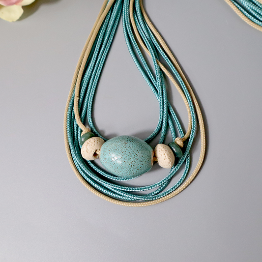 Kordelkette mit Porzellan-Anhänger