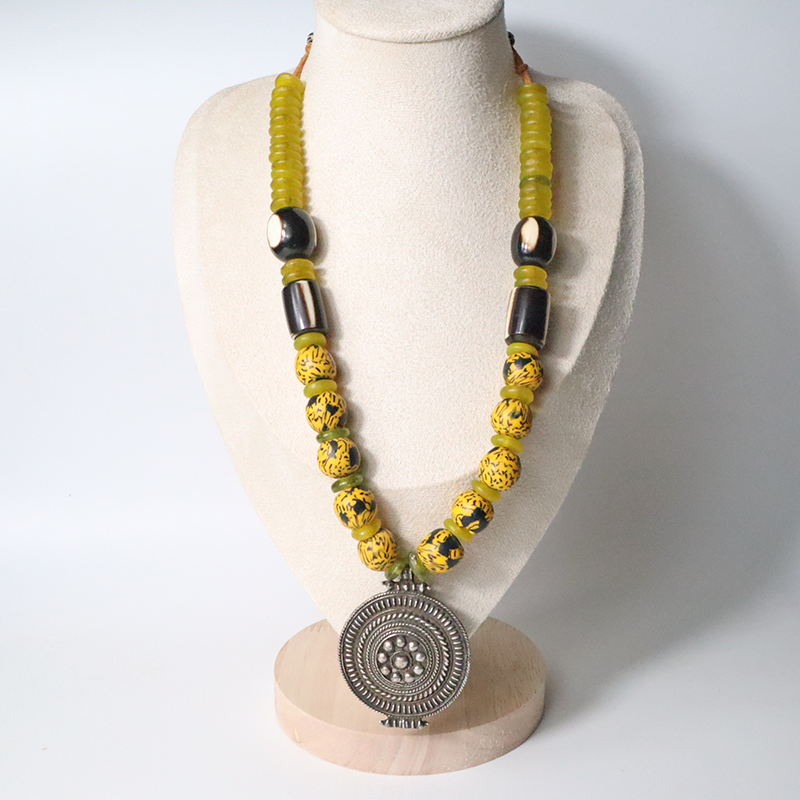 Diese Kette besteht aus den verschiedensten Perlen, viele davon wurden in aufwändiger Handarbeit in Afrika hergestellt.
