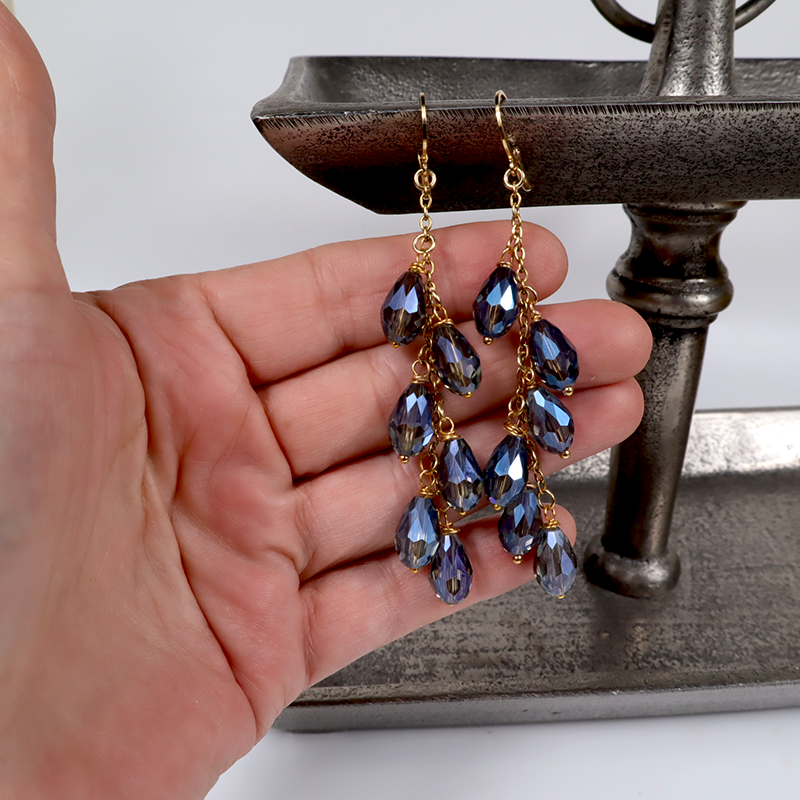Elegante Ohrringe aus tschechischem Schmuckglas, vergoldeten Beschlägen, sie sind zu deinem Abendkleid die perfekte Wahl.