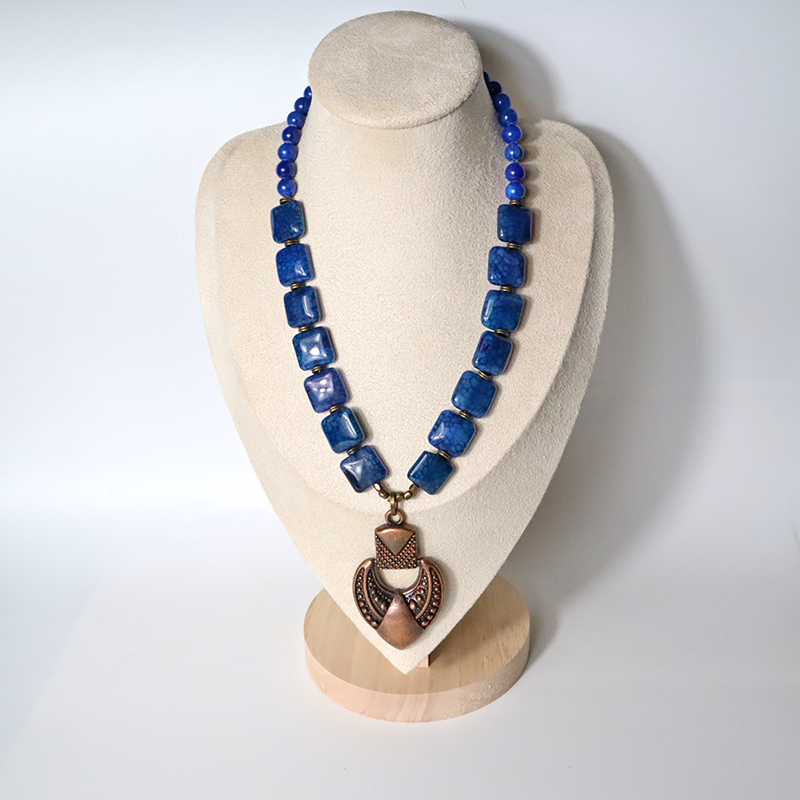 Fantastische Royal - blau Halskette aus asiatischen Jadeperlen, mit einem mutigen Kupfer Anhänger kombiniert. Diese Kette ist elegant und leicht zu tragen. Sie wird perfekt zu jedem Outfit passen.