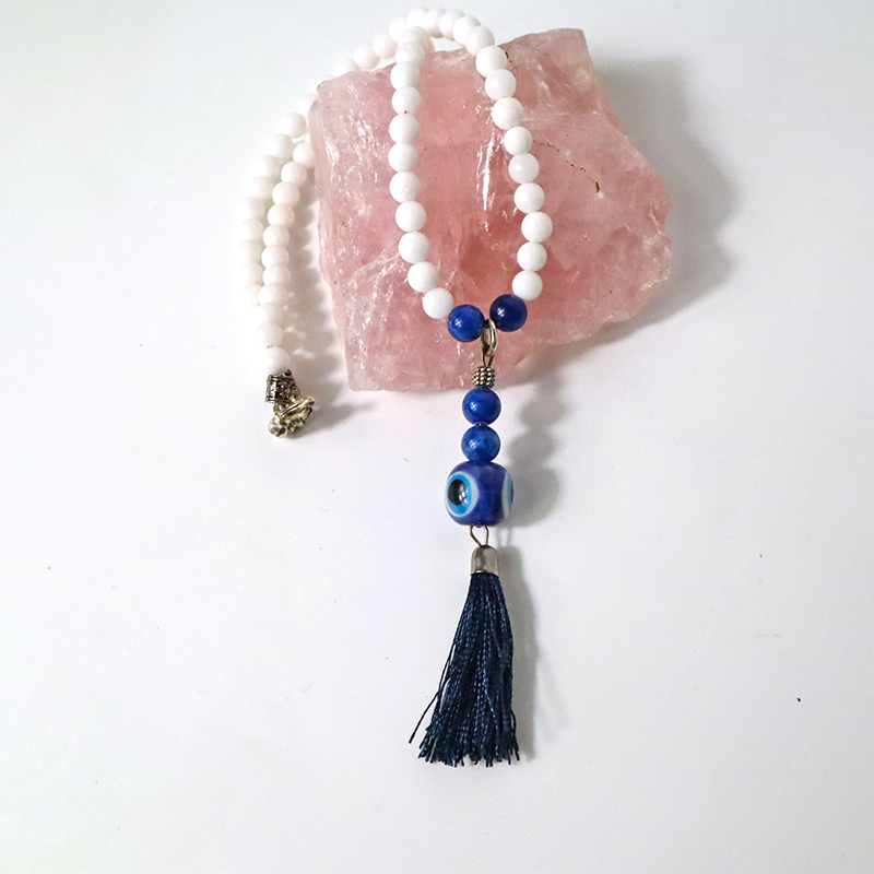 Sommerliche Halskette aus Thaiwan-Jadeperlen mit Böse-Augeperle der "Nazar-Amulett" (schützt gegen Neid und Missgunst) kombiniert.