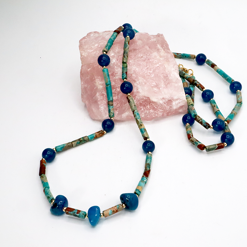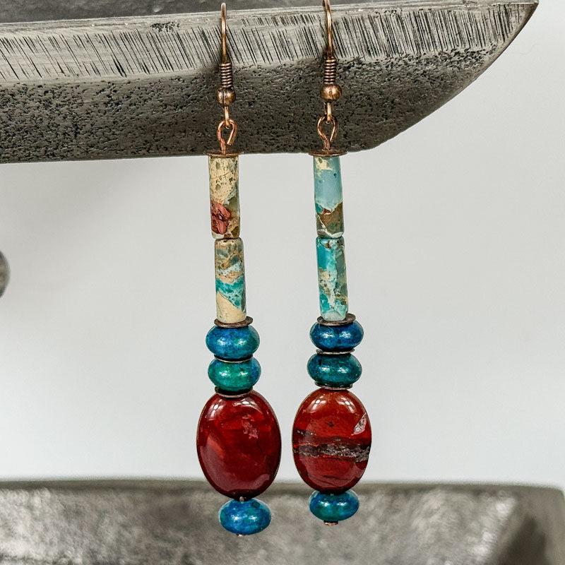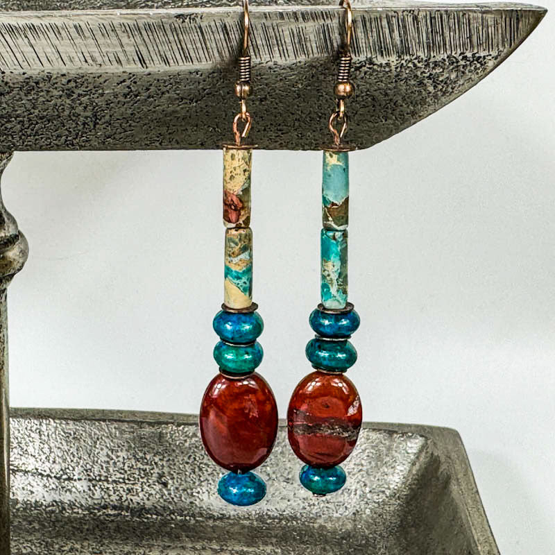 Ohrringe aus rotem und Aquaterra Jaspis mit Chrysokollperlen kombiniert