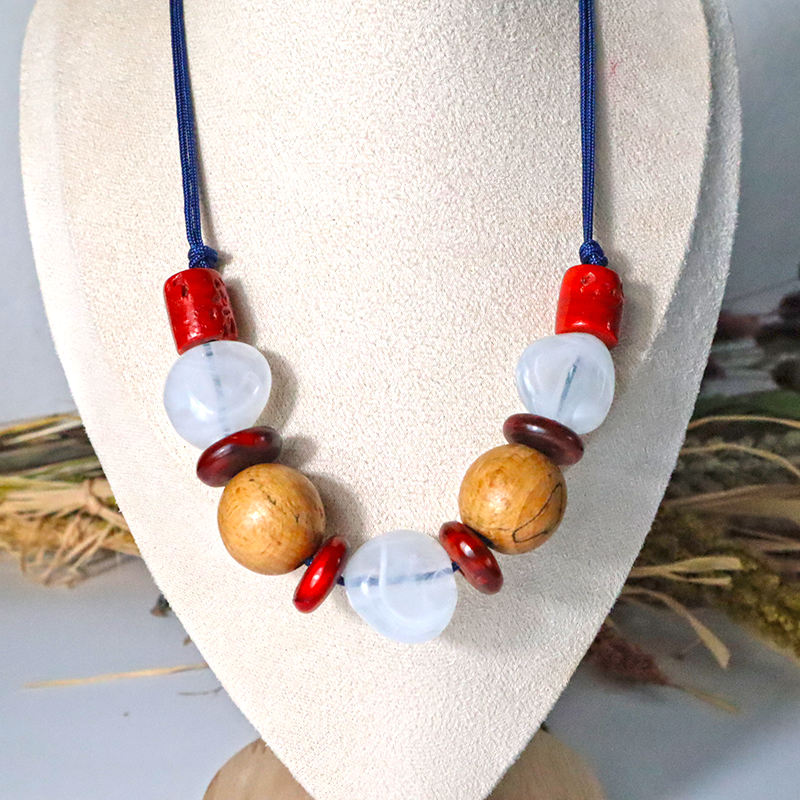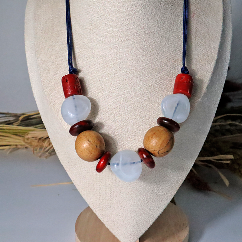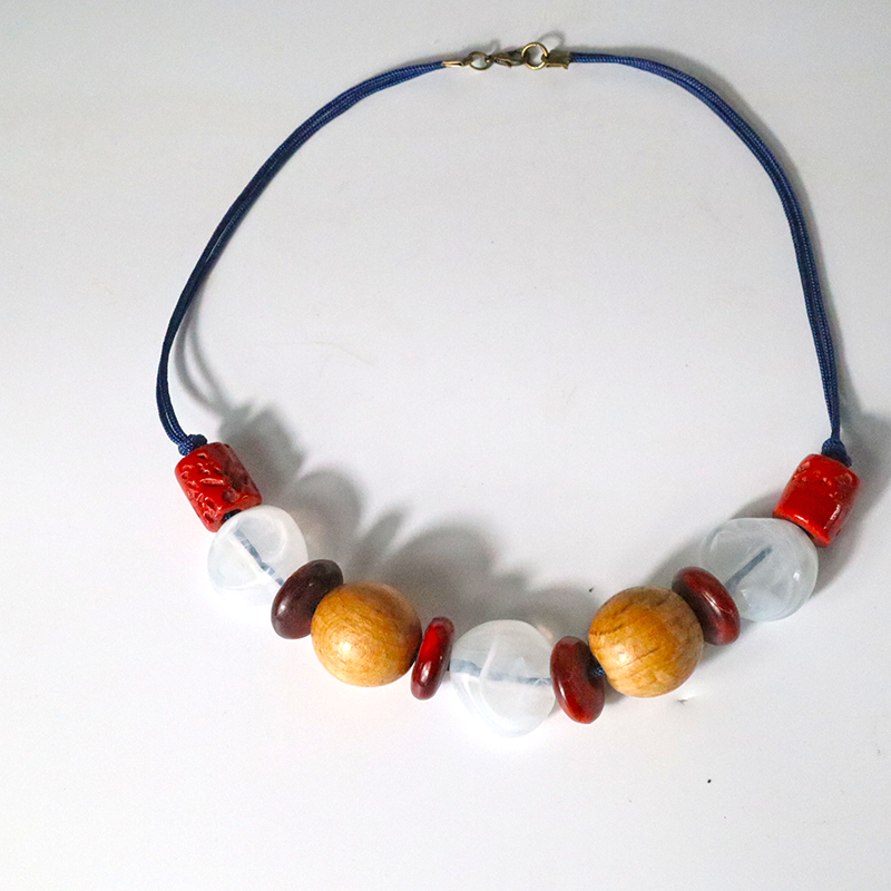 Setze ein Statement! Diese Kordelkette kombiniert verschiedene Perlen aus Holz, Keramik und Kunstsoff zu einem bunten, modernen Look. Ideal für alle die ihren Stil kreativ und individuell gestalten möchten.