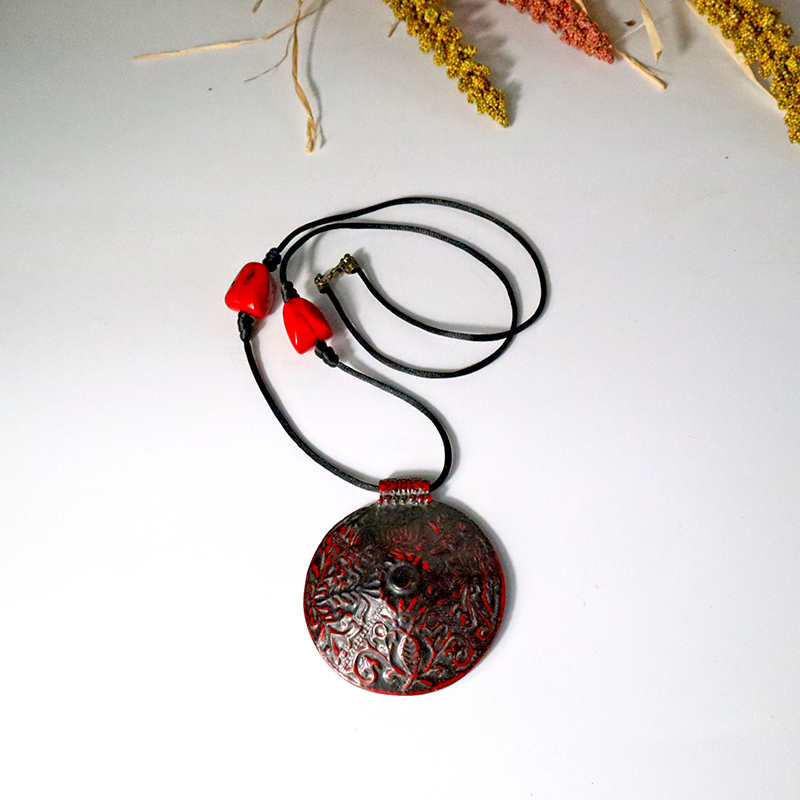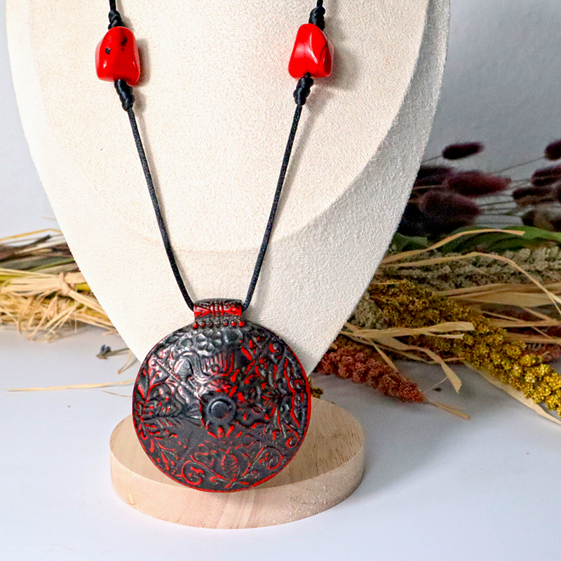 Seiden Kordel kombiniert mit einem großen Harz-Anhänger verleiht jedem Outfit einen besonderen Stil - elegant, modern und auffällig.