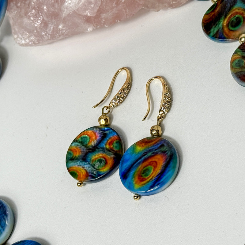 Wunderschöne elegante Ohrringe aus Perlmutt , vergoldeten kleinen Perlen und Zirkonia Ohrhaken