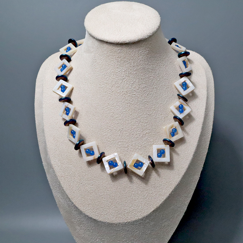 Sehr schöne Kette aus Perlmutt Perlen, kleinen Jadeperlen und Hämatit als Zwischenperlen, die Kette passt gut zum Jenas, oder Sommerkleid. Sie ist sehr leicht und angenehm zu tragen.